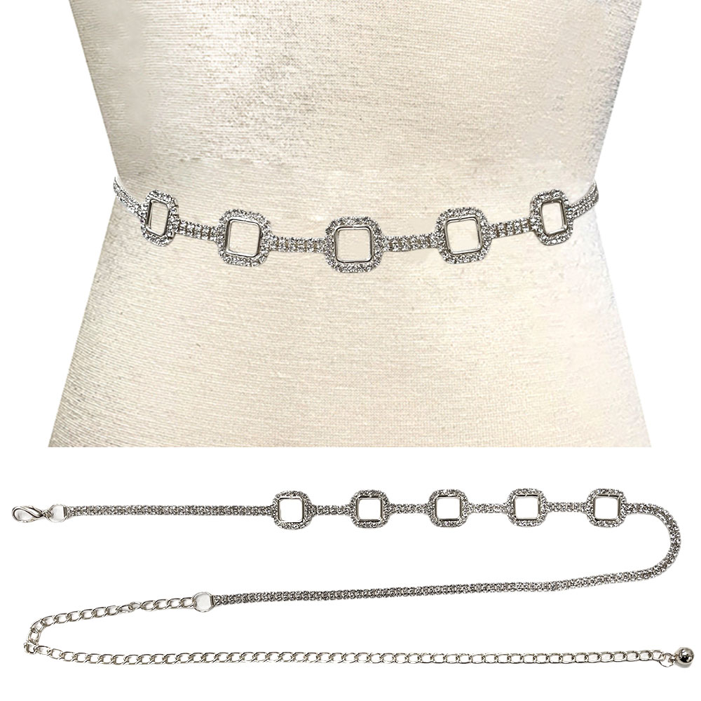 Stone Paved Open Square Link Pointed Rhinestone Chain Waist Belt