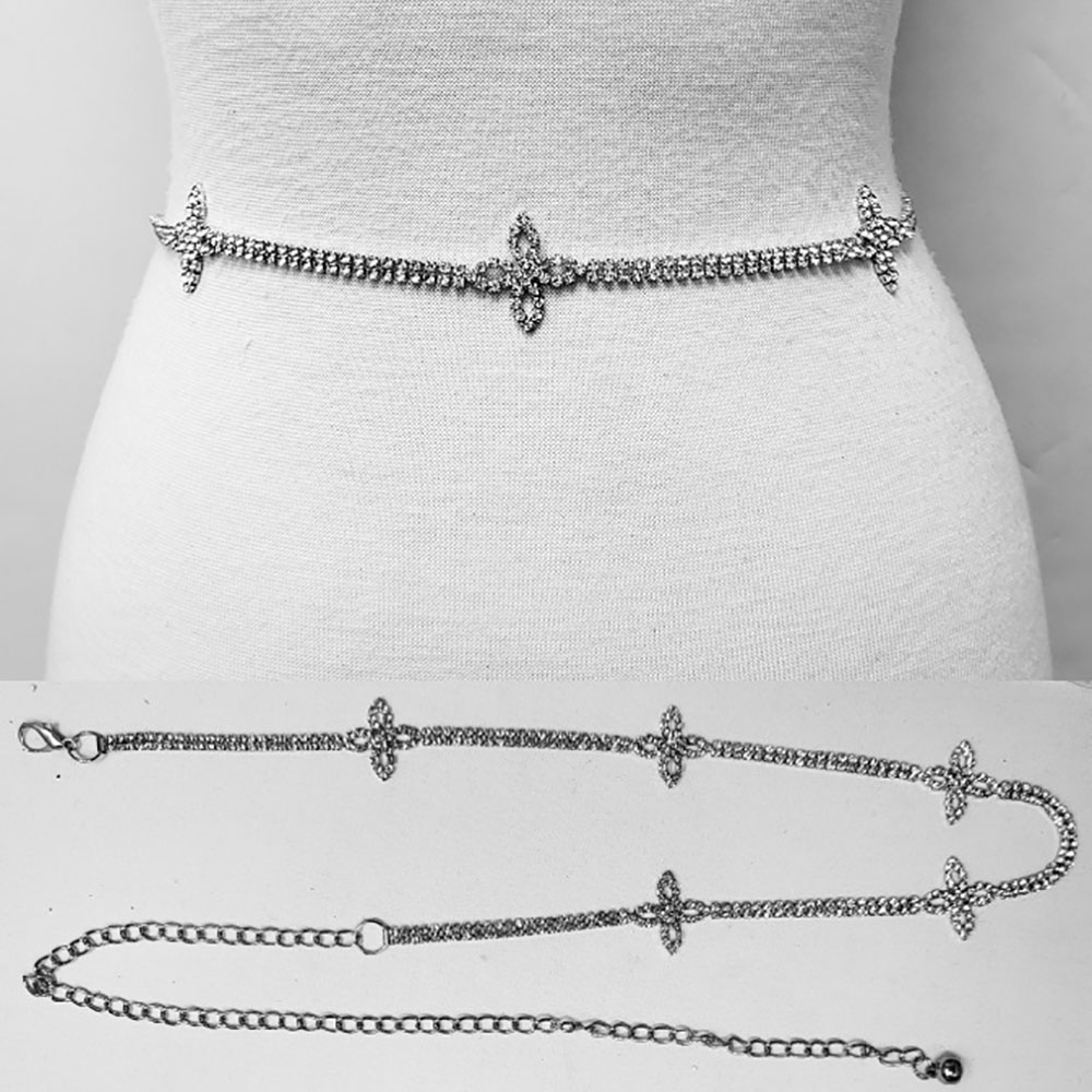 Stone Paved Quatrefoil Link Pointed Rhinestone Chain Waist Belt