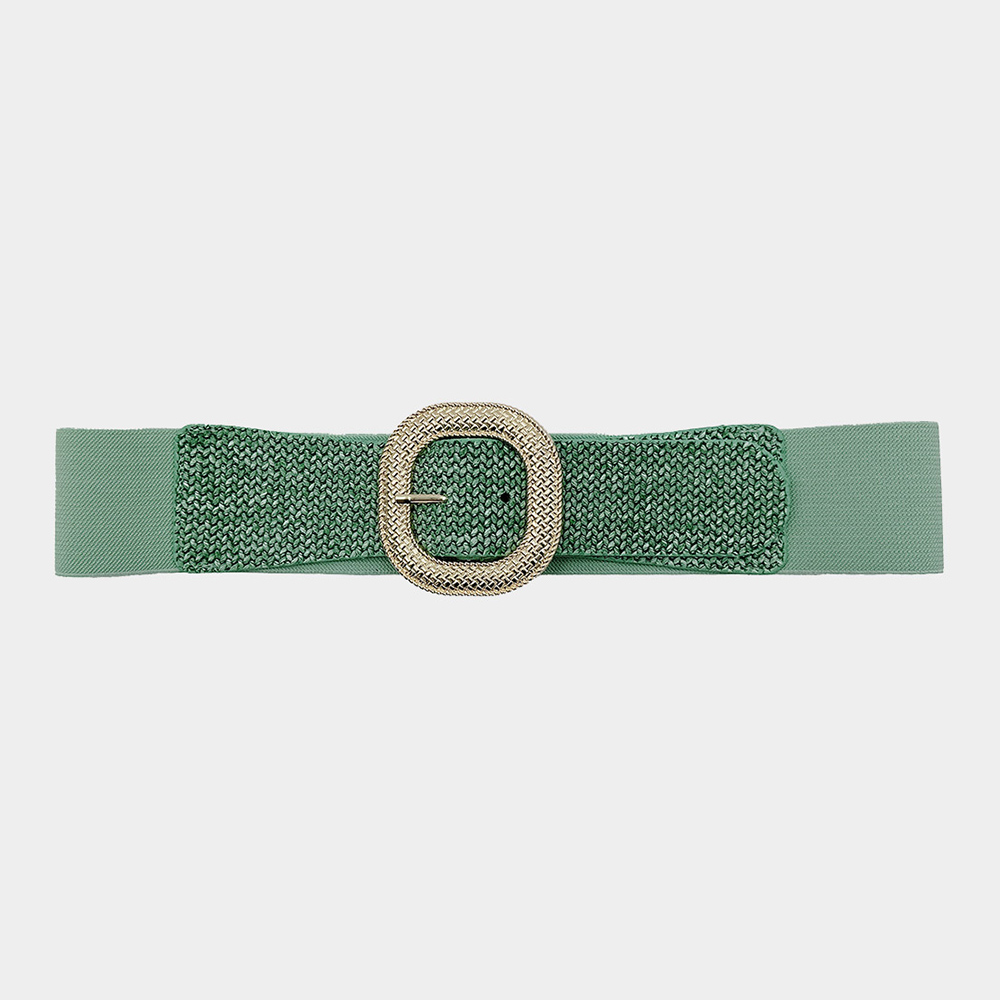 Textured Metal Buckle Accented Braided Elastic Belt