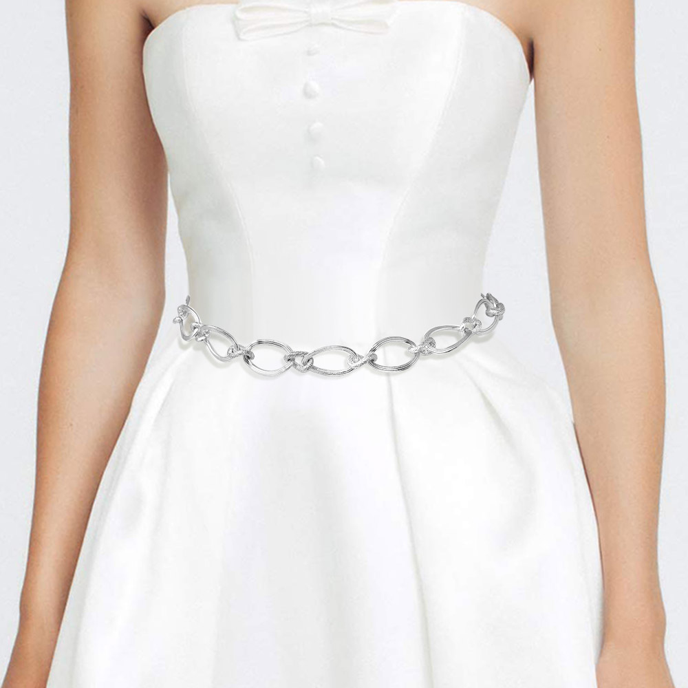 • Chic waist chain belt featuring textured oval links and knot accents. Adjustable length for a perfect fit. Ideal for elevating casual or formal outfits with a touch of bold style.