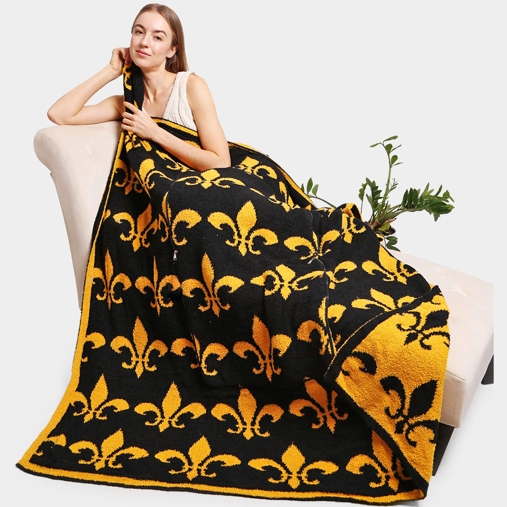 2 IN 1 Reversible Fleur de Lis Patterned Blanket / Pillow