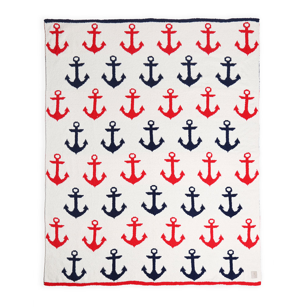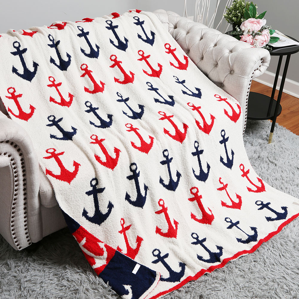 • Bring coastal charm to your living space with this nautical knit throw blanket adorned with a repeating anchor design. Ideal for cozying up on the couch or adding a seaside vibe to your dĂ©cor, this soft and durable blanket blends comfort with timeless maritime flair.