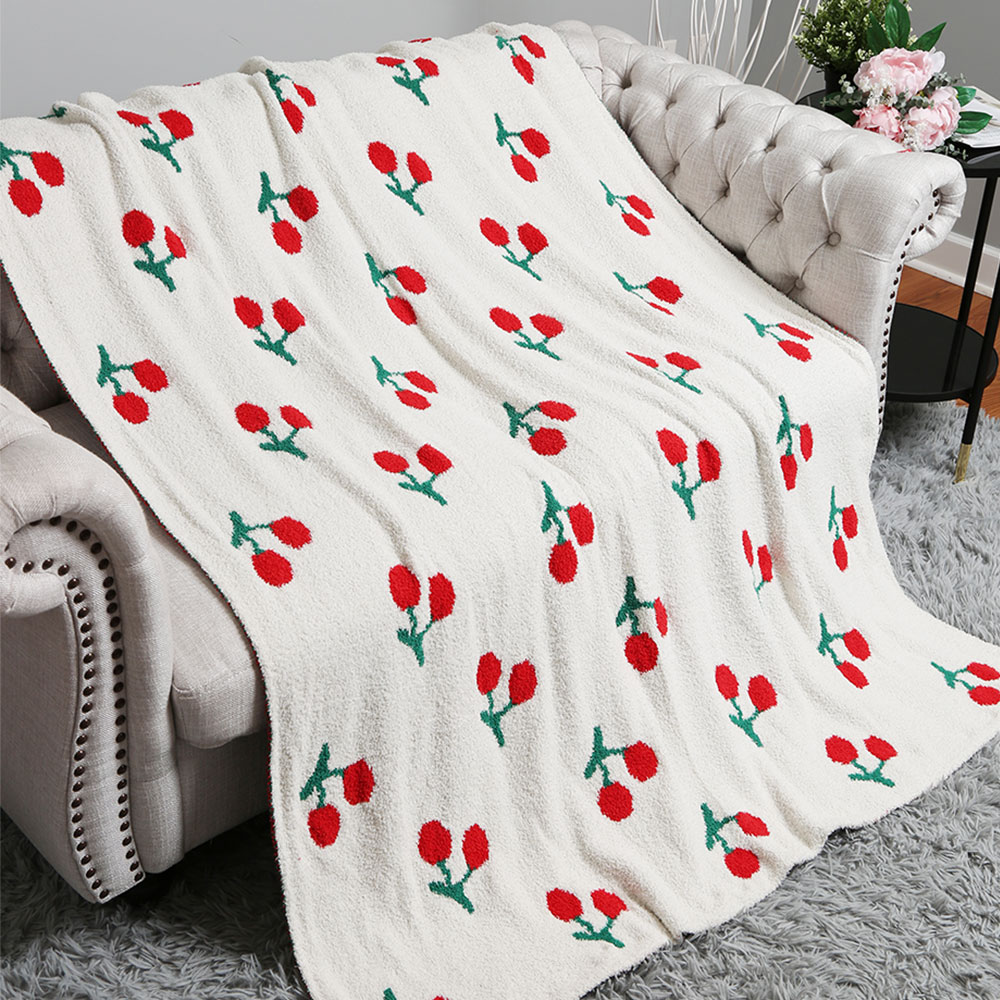 Details • Size : 50" X 60" • Material : 100% Poly. Microfiber • Care: Machine Wash - Cold, Do Not Bleach, Lay Flat To Dry, Do Not Iron, Do Not Dry Clean • Add a touch of sweetness to your space with this cozy knit throw blanket featuring a charming cherry pattern. Perfect for draping over your couch or bed, this soft and warm blanket combines playful design with everyday comfort for a cheerful home accent.