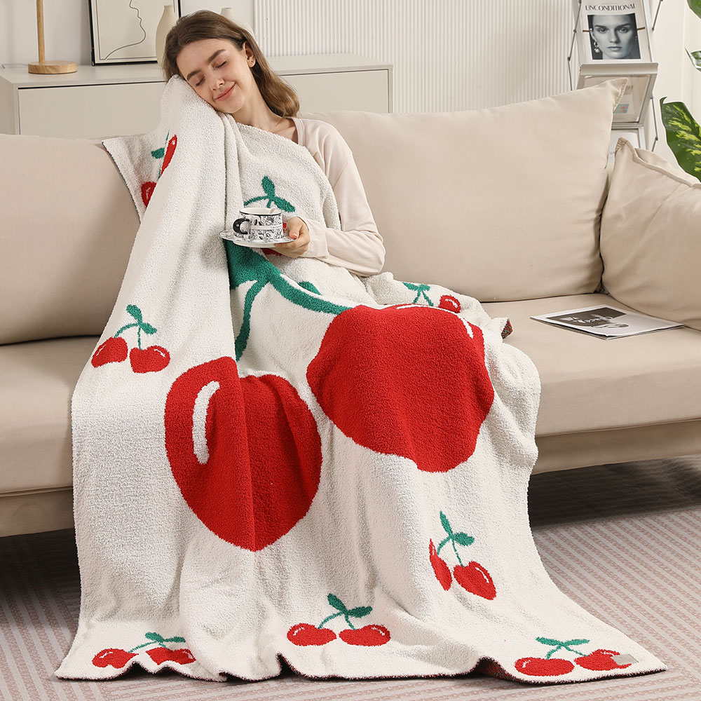 • Cozy throw blanket featuring a fun cherry pattern. Made from soft, plush material for ultimate comfort and warmth. Ideal for home dĂ©cor, lounging, or gifting to add a playful touch to any space.