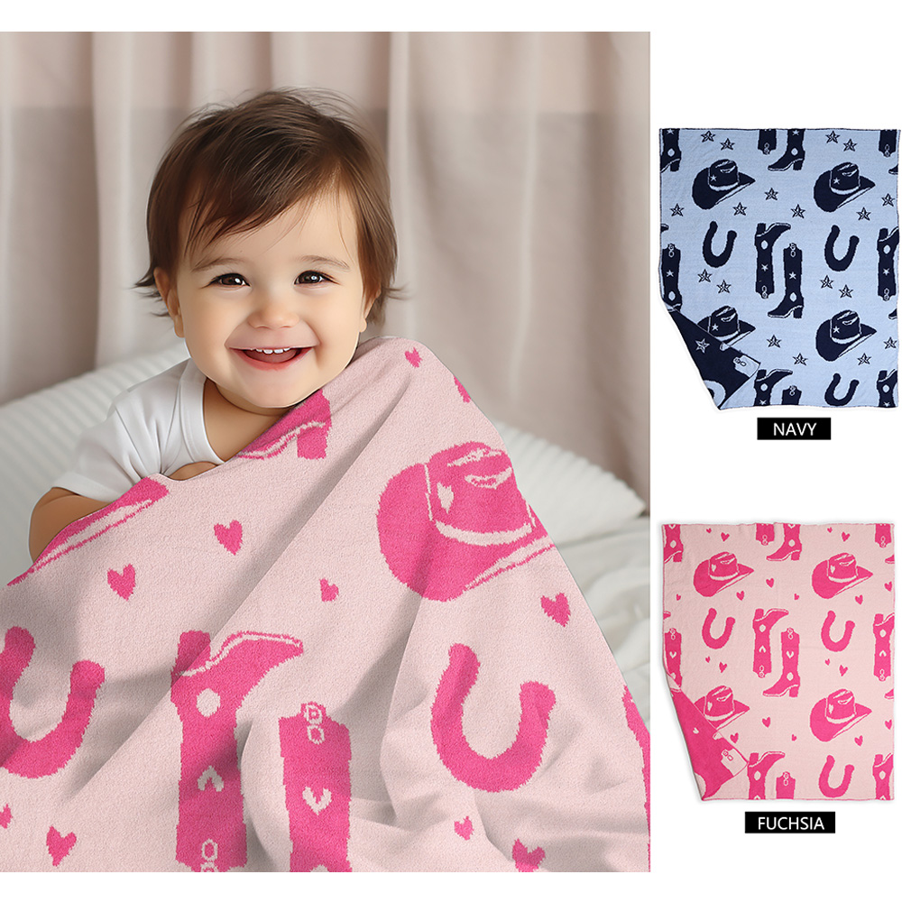 Cowgirl Patterned Reversible Kids Throw Blanket