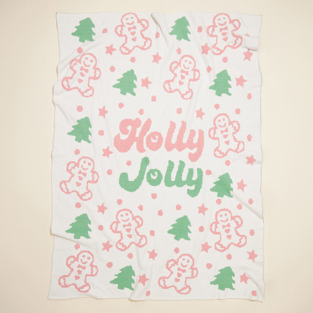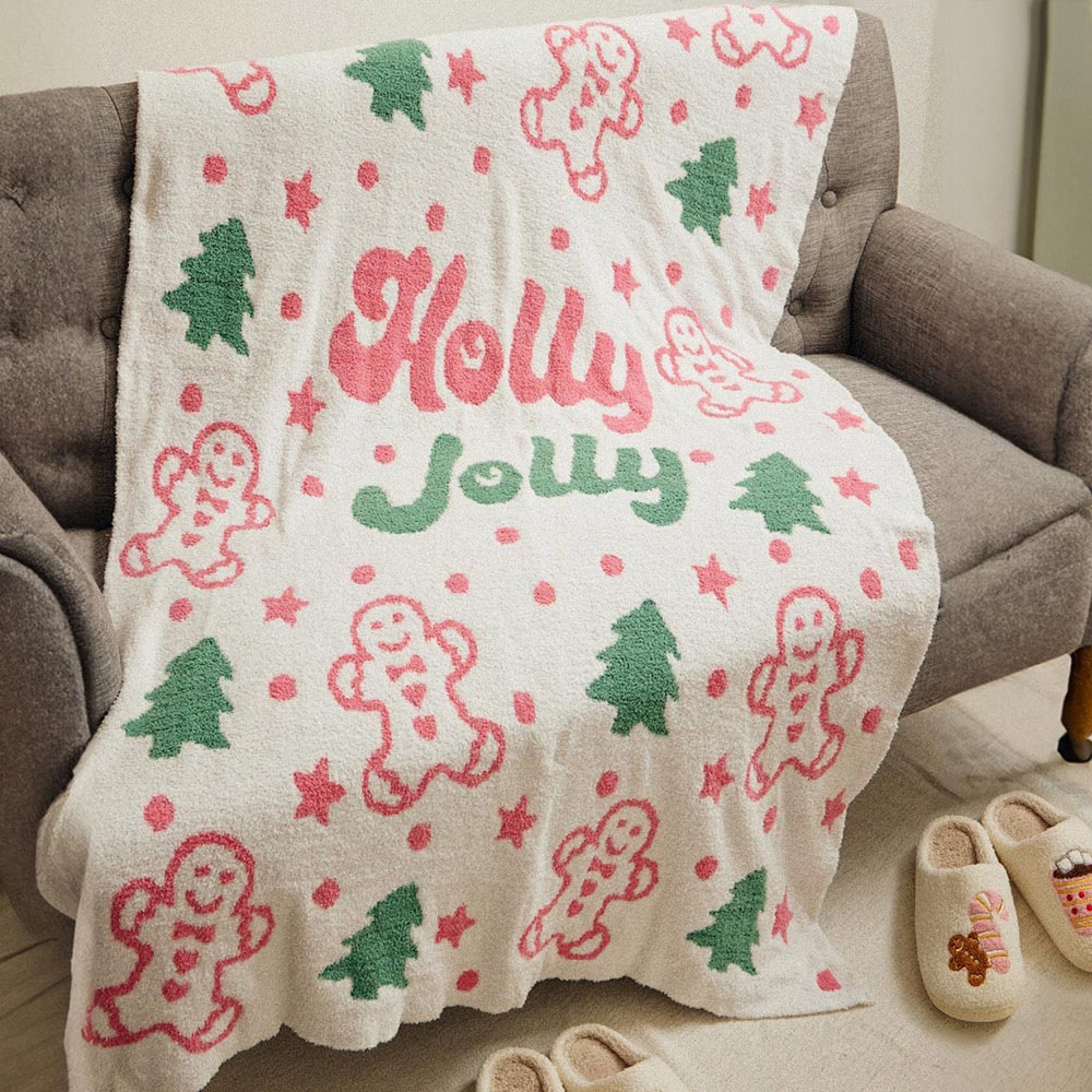 Holly Jolly Gingerbread Christmas Tree Blanket