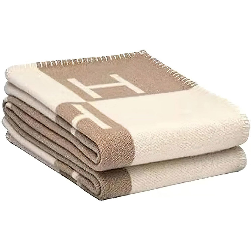 Details • Size : 50" X 60" • Material : 100% Acrylic • Add timeless style to your home with this monogrammed border throw blanket in beige. Featuring a bold lettered pattern and contrasting trim, it’s soft, lightweight, and perfect for draping over a sofa or bed. A cozy yet chic accent that blends comfort with modern elegance.