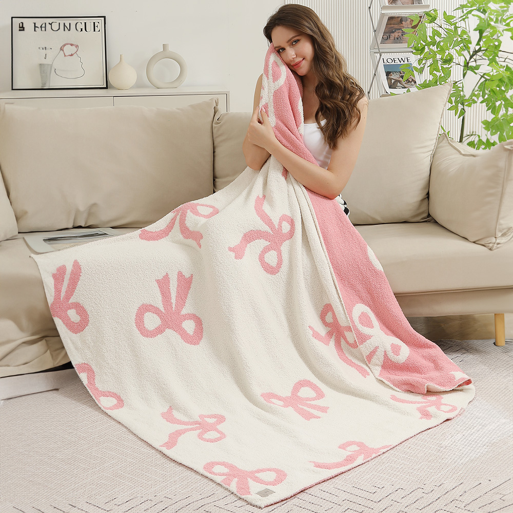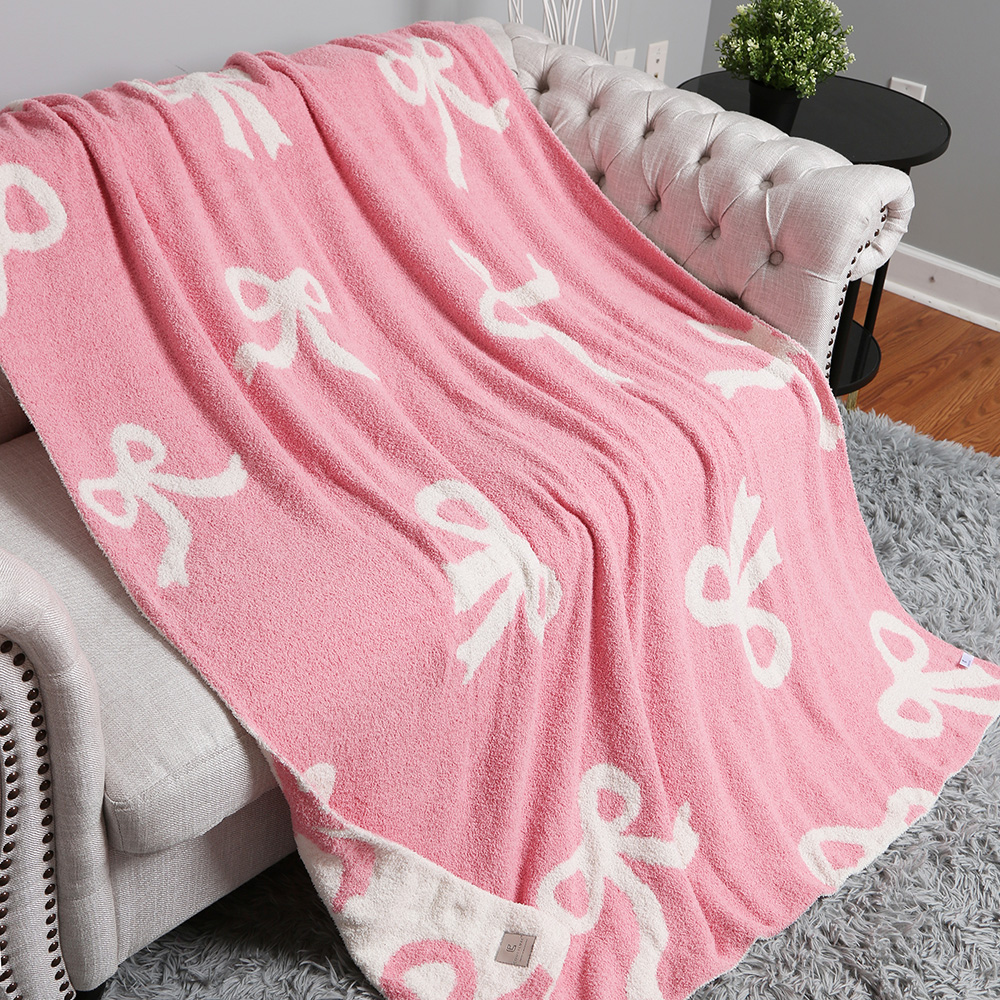 Details • Size : 50" X 60" • Material : 100% Poly. Microfiber • Care: Machine Wash - Cold, Do Not Bleach, Lay Flat To Dry, Do Not Iron, Do Not Dry Clean • Snuggle in style with this pink bow blanket. Designed with a playful bow pattern, it offers softness, warmth, and charm, making it perfect for lounging, layering on your sofa, or adding a decorative touch to your bedroom. A cozy and stylish throw.
