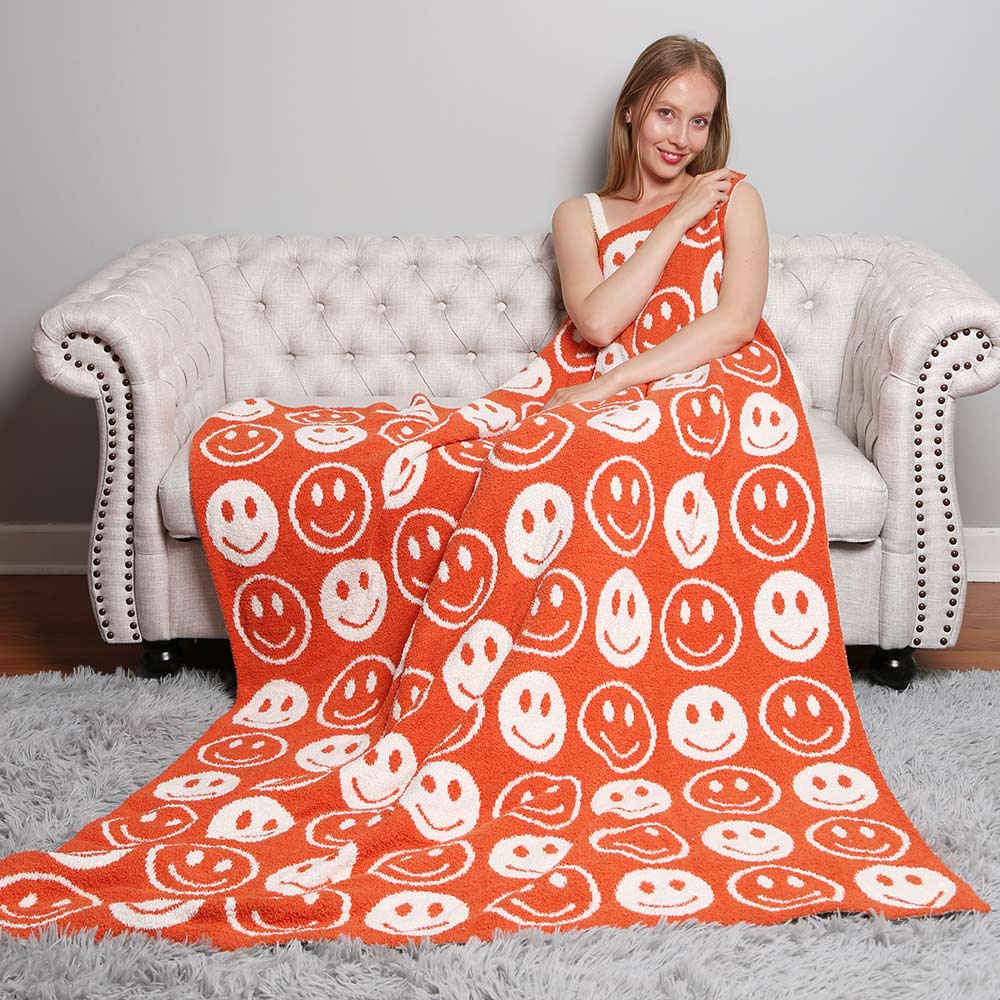 SMILE PATTERNED REVERSIBLE Throw Blanket
