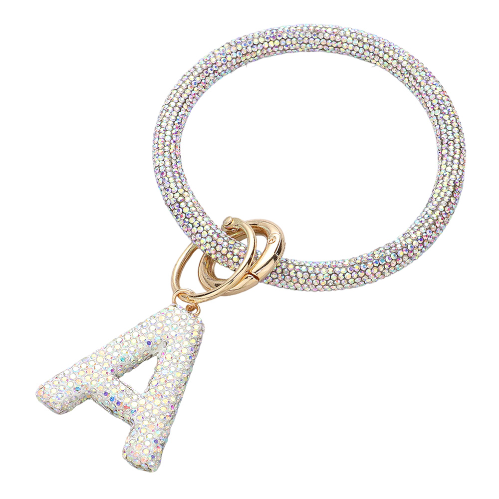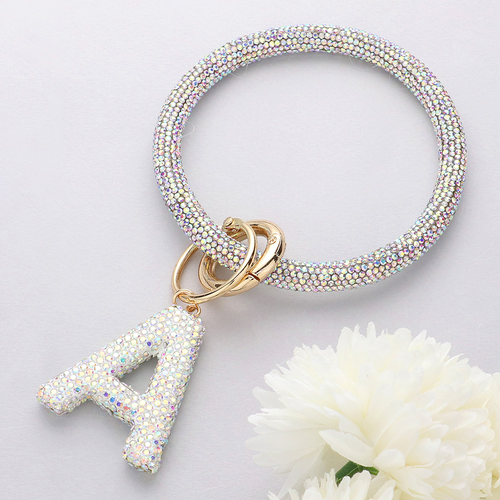 -A- Bling Studded Initial Monogram Charm Bracelet Keychain