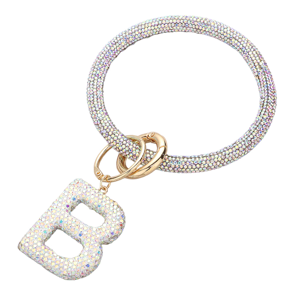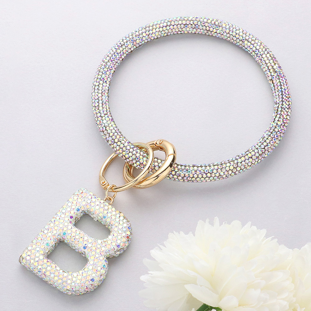 -B- Bling Studded Initial Monogram Charm Bracelet Keychain
