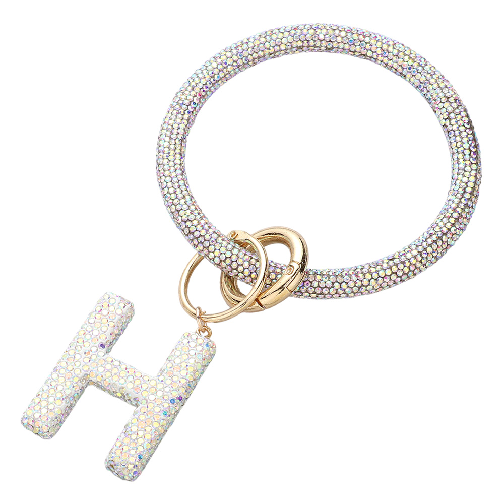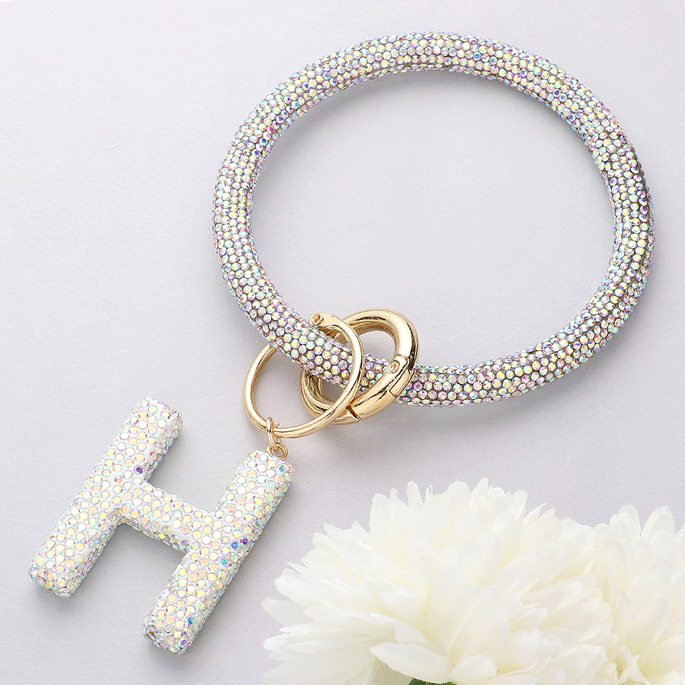-H- Bling Studded Initial Monogram Charm Bracelet Keychain