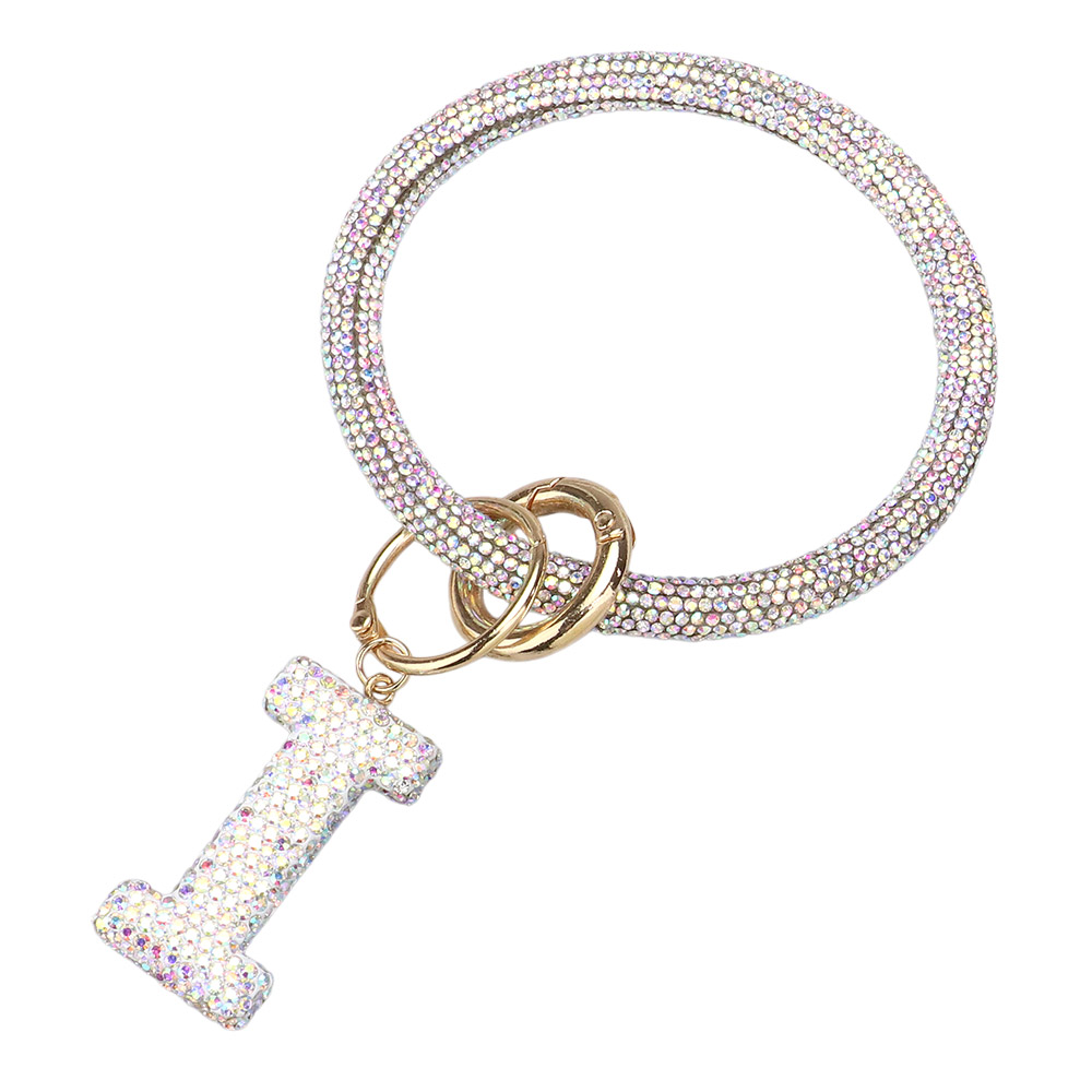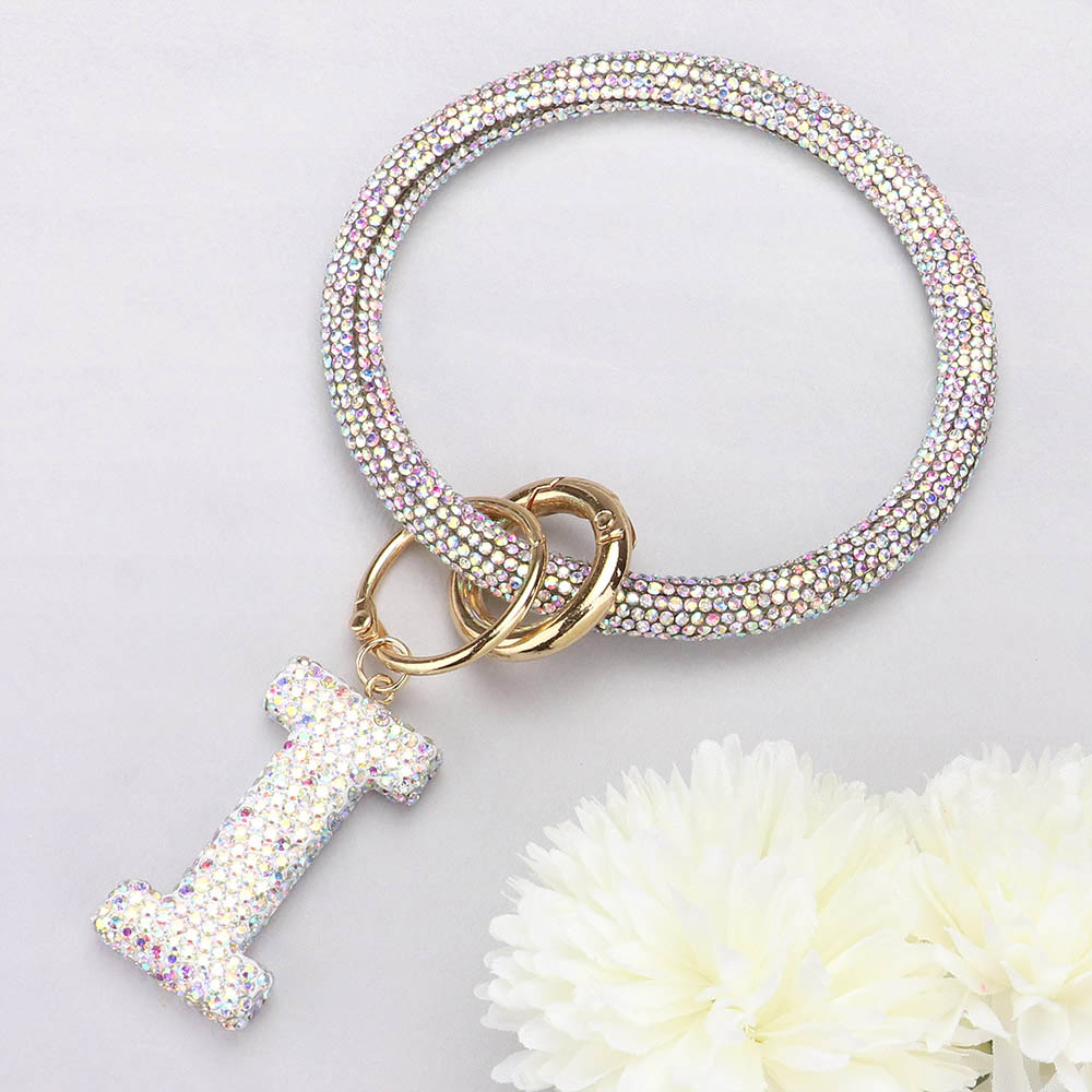 -I- Bling Studded Initial Monogram Charm Bracelet Keychain