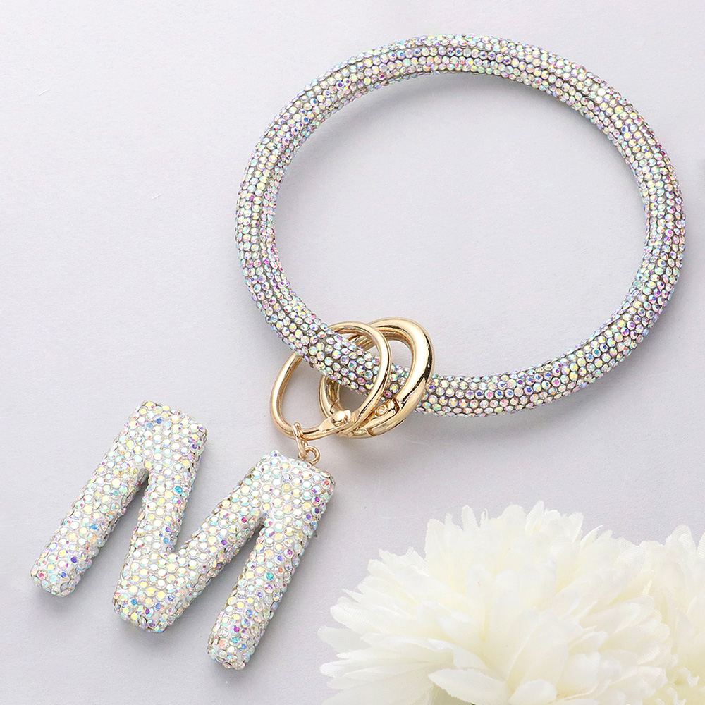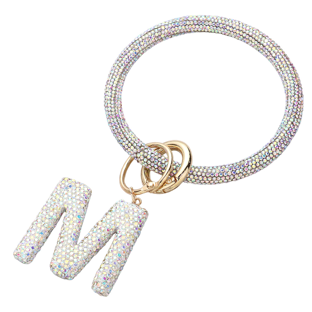 -M- Bling Studded Initial Monogram Charm Bracelet Keychain