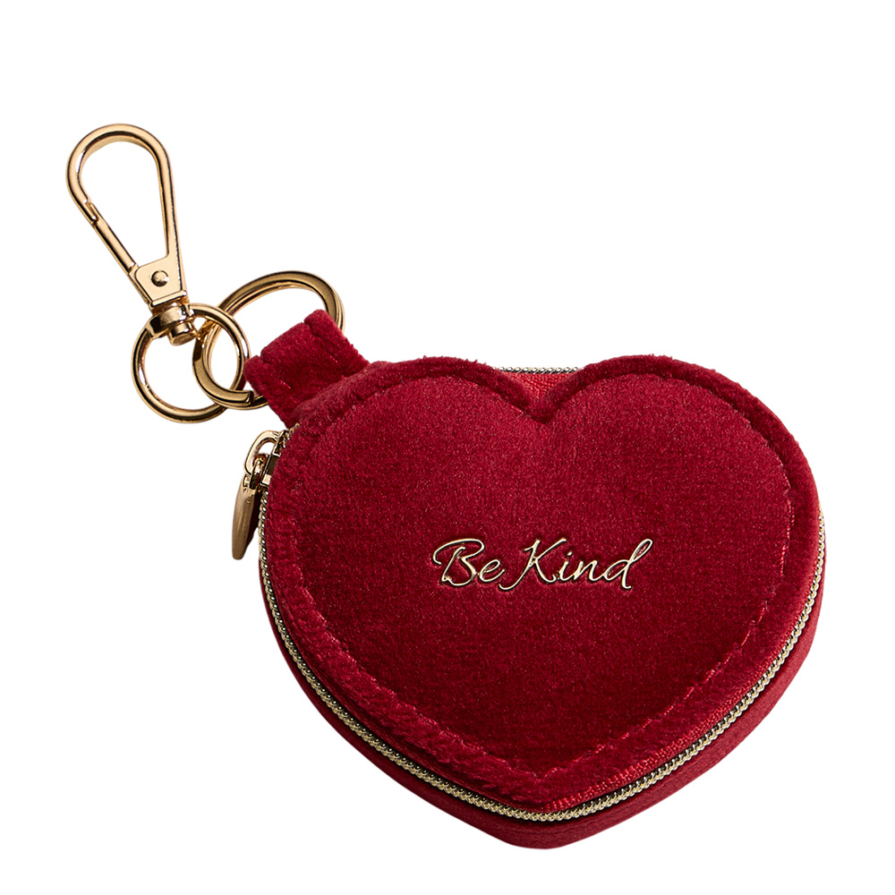 Details • Size : 3" X 2" X 1.25" • Zipper closure for secure storage • Polished gold-tone keyring with clasp hardware • Compact storage for rings, earrings & small jewelry • Ideal for travel, everyday use, or thoughtful gifts • Heart shaped travel jewelry case keychain featuring a zipper closure, soft interior with ring slots and compartment for small accessories. Compact and portable design makes it ideal for keeping jewelry secure at home or on the go, while the keychain clip adds convenience and style for daily use.
