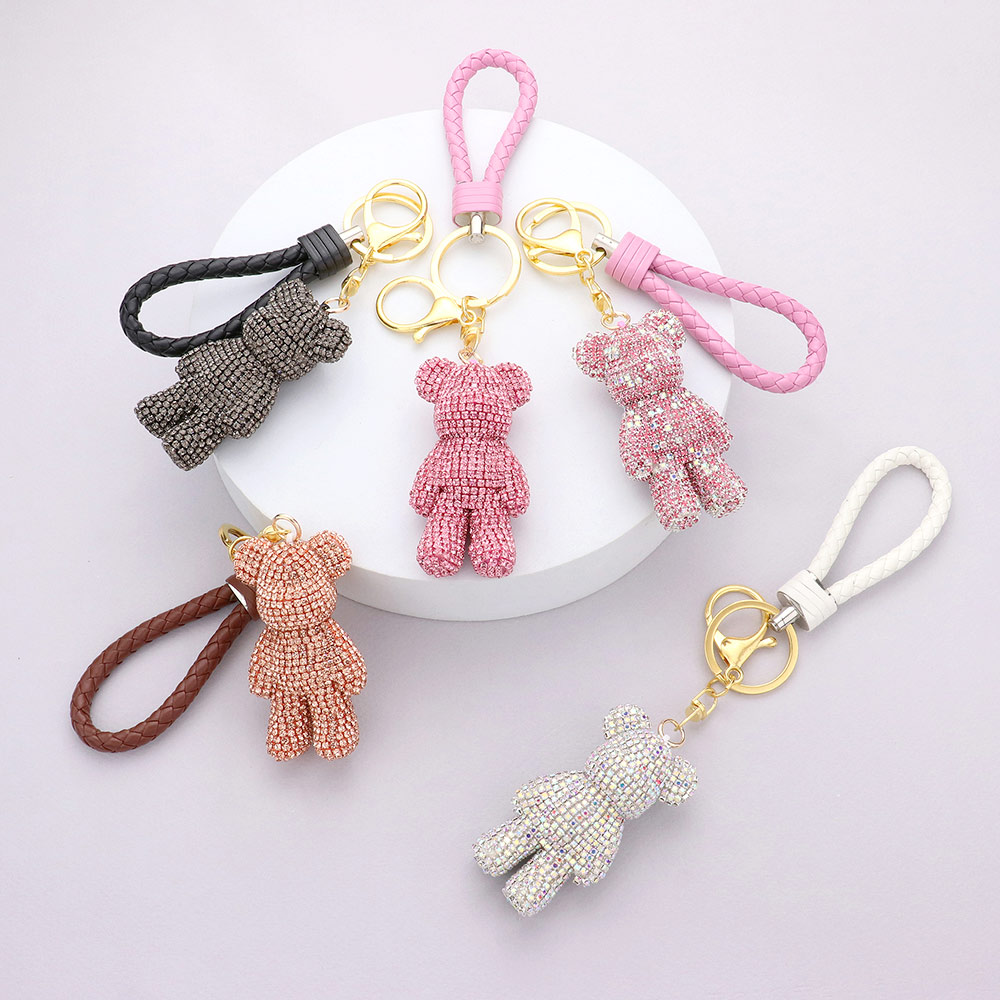 Bling Bear Figure Faux Leather Strap Keychain