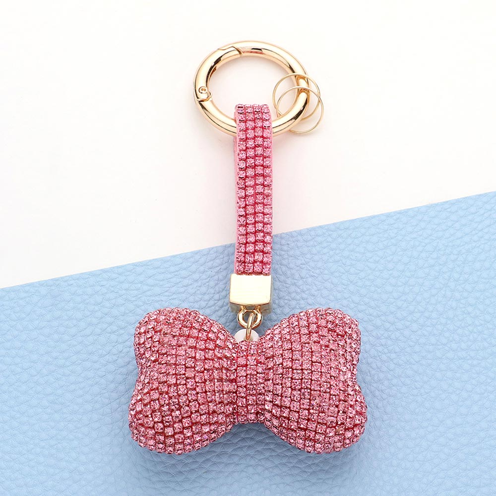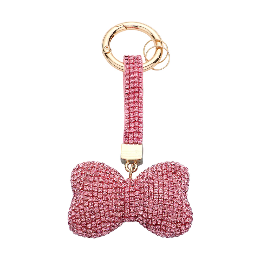 Bow Knot Accent Metal Heart Pearl Strawberry Charm Keychain / Bag Charm