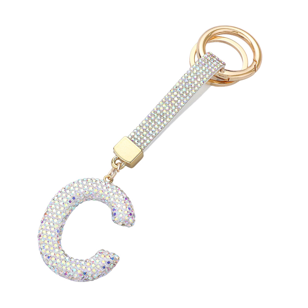 Bling Studded Monogram Initial C Keychain