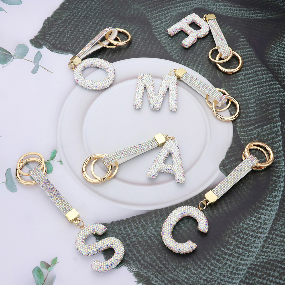 -A- Bling Studded Monogram Initial Keychain / Bag Charm