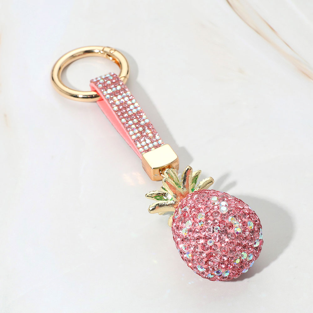 Details • Size : 1.5" X 2.1", 5.75" L • Brighten your keys or handbag with this rhinestone pineapple keychain. Featuring a glittering design and loop strap for easy attachment, it adds a fun, tropical accent to your daily accessories. Perfect as a cheerful gift idea.