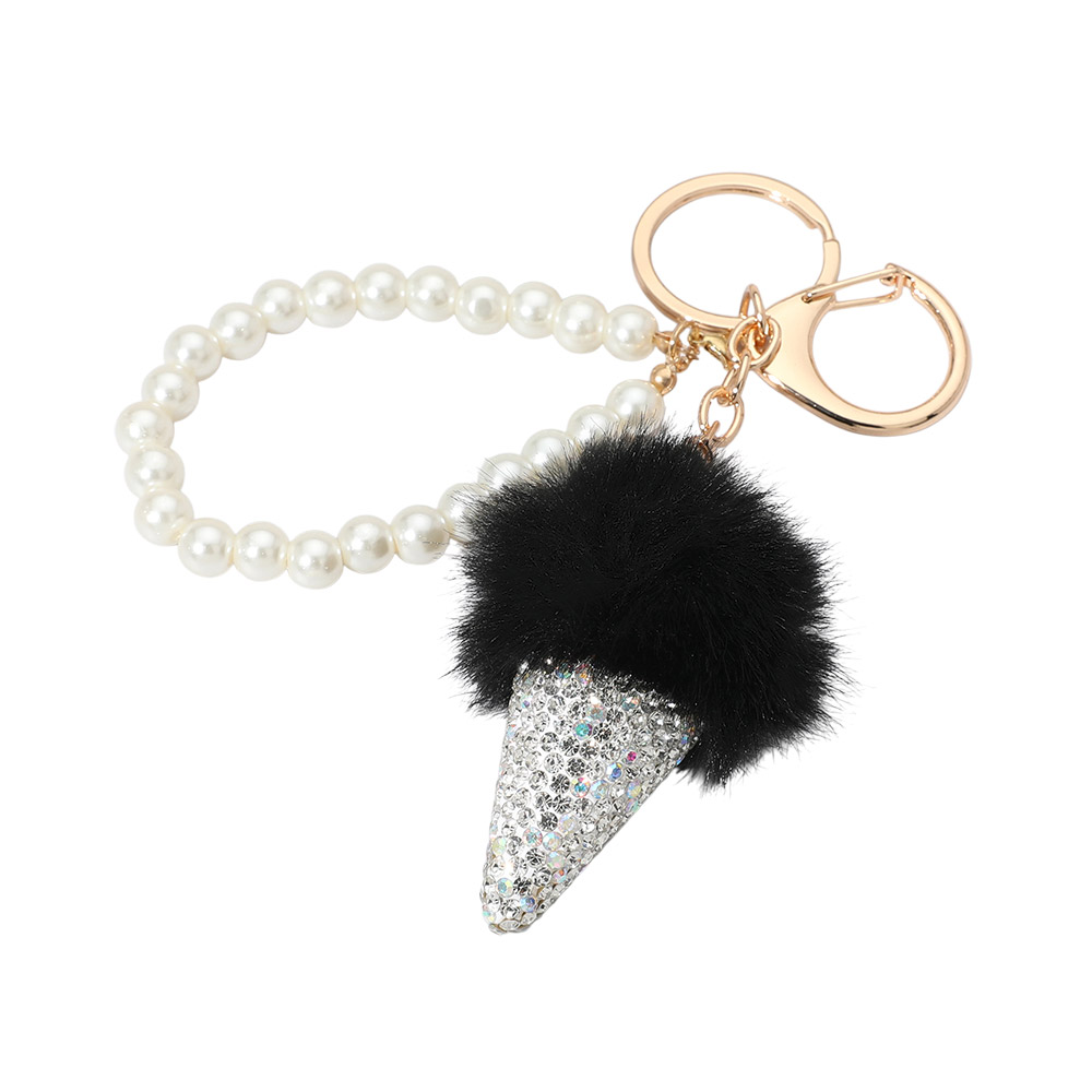 Bling Studded Pom Pom Ice Cream Cone Pearl Wristlet Keychain / Bag Charm