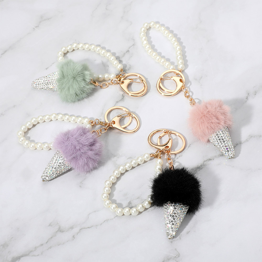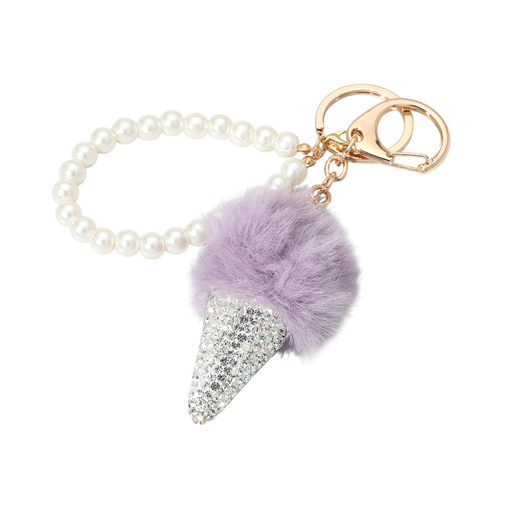 Bling Studded Pom Pom Ice Cream Cone Pearl Wristlet Keychain / Bag Charm
