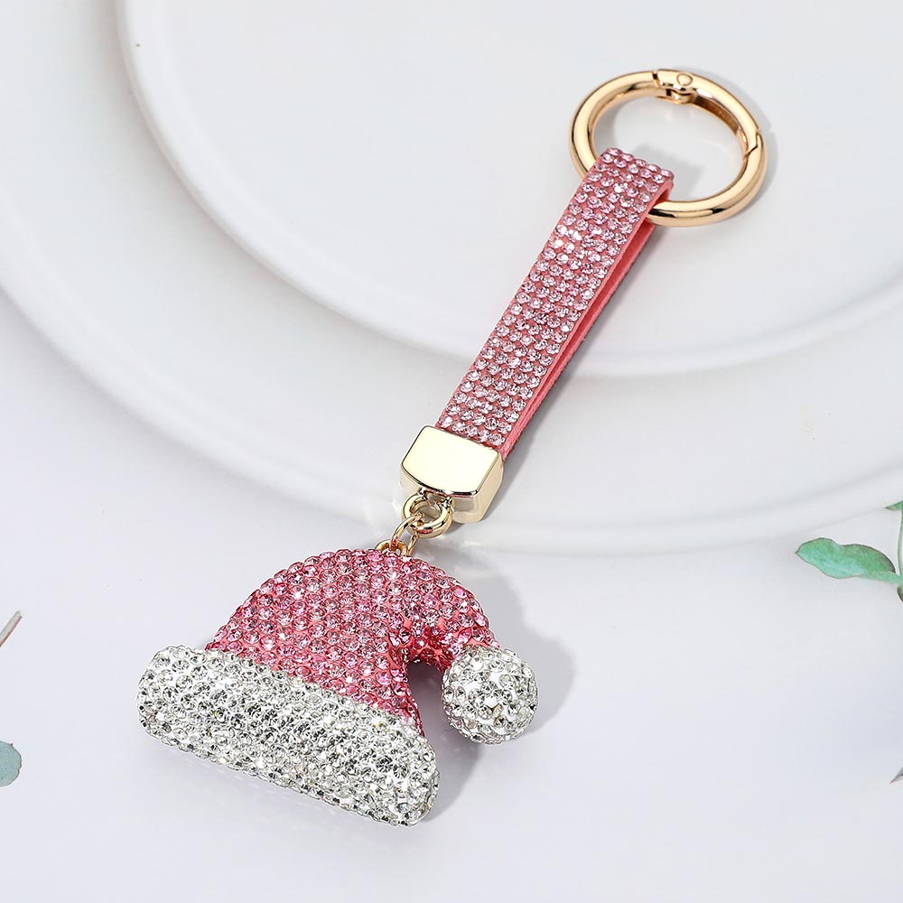 Details • Size : 1.8" X 1.5", 5.4" L • Sparkling Santa hat keychain covered in dazzling rhinestones and paired with a matching strap. A festive and stylish accessory perfect for holiday season flair. Attach it to keys, handbags, or gift bags for a cheerful touch or use it as a cute stocking stuffer idea. • Lead and Nickel Compliant