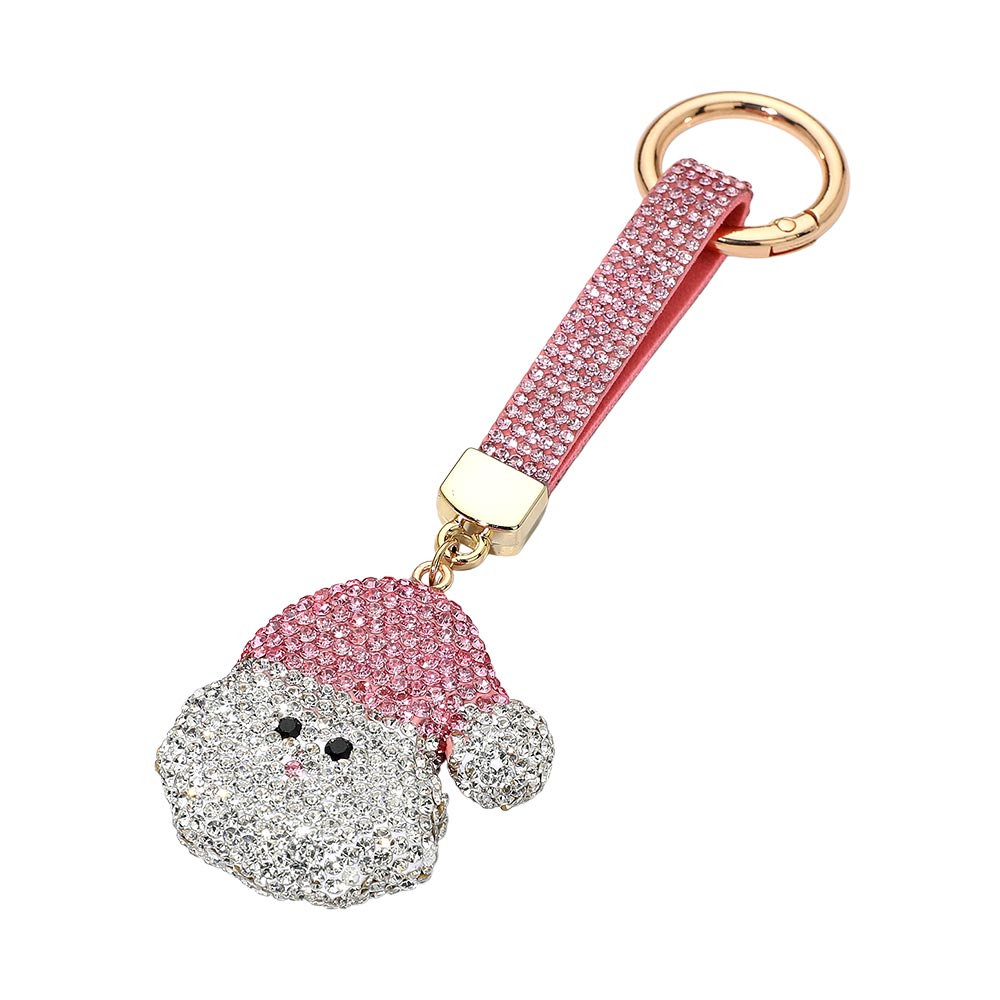 Details • Size : 1.7" X 2", 5.5" L • Festive Santa Claus keychain covered in shimmering rhinestones with a matching strap for easy use. A fun and sparkling holiday accessory perfect for decorating keys, handbags, or gift wrapping. Brings cheerful Christmas spirit and makes a charming seasonal gift idea. • Lead and Nickel Compliant