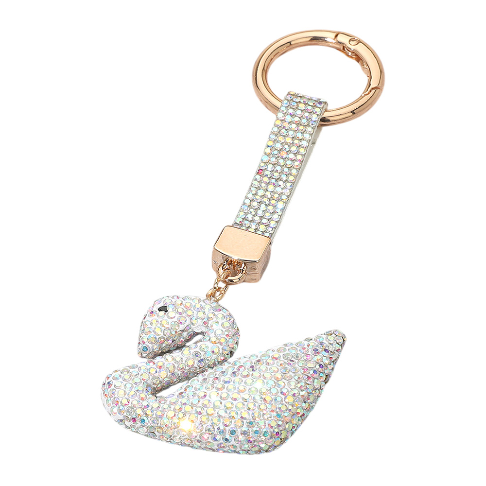• Elegant swan-shaped keychain adorned with sparkling rhinestones, paired with a matching strap for added charm. Perfect for accessorizing keys, handbags, or as a thoughtful gift with timeless style.