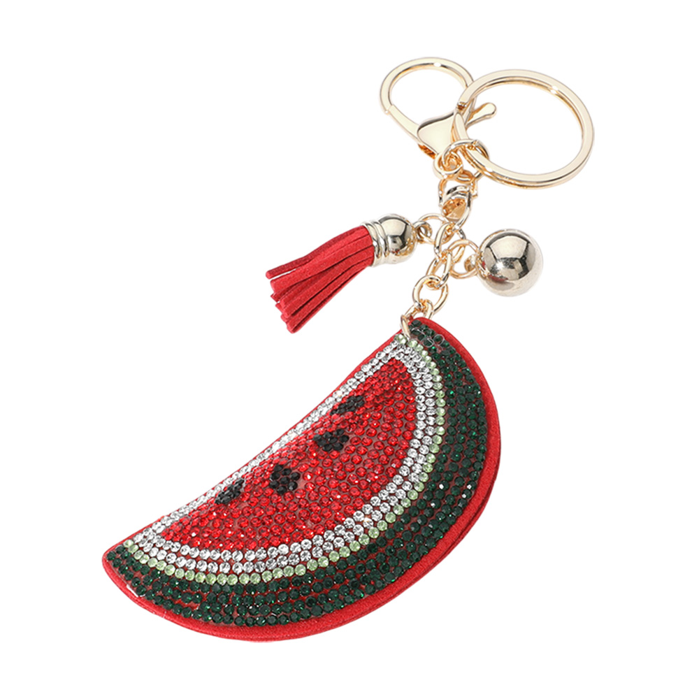 Details • Size : 6.25" L, 1.75" X 3.25" • Brighten your keys or bag with this sparkling watermelon slice keychain. Featuring a glittery design, playful tassel, and metallic accents, it's a cheerful accessory for summer vibes all year round. • Lead and Nickel Compliant