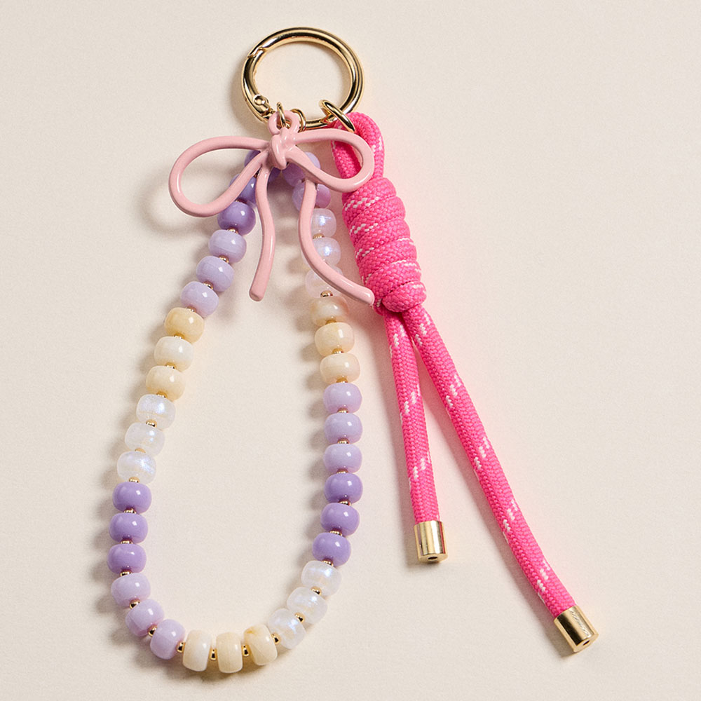 Bow Accent Beaded Charm Rope Keychain / Bag Charm