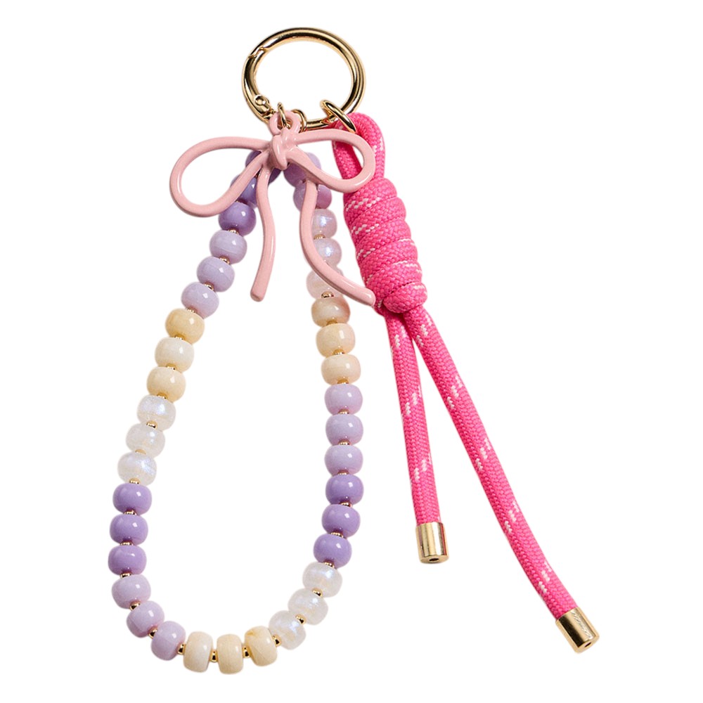 • Charming keychain with pastel beads, pink rope detail, and a cute bow accent. Ideal for adding a playful, feminine touch to bags, purses, or keys.