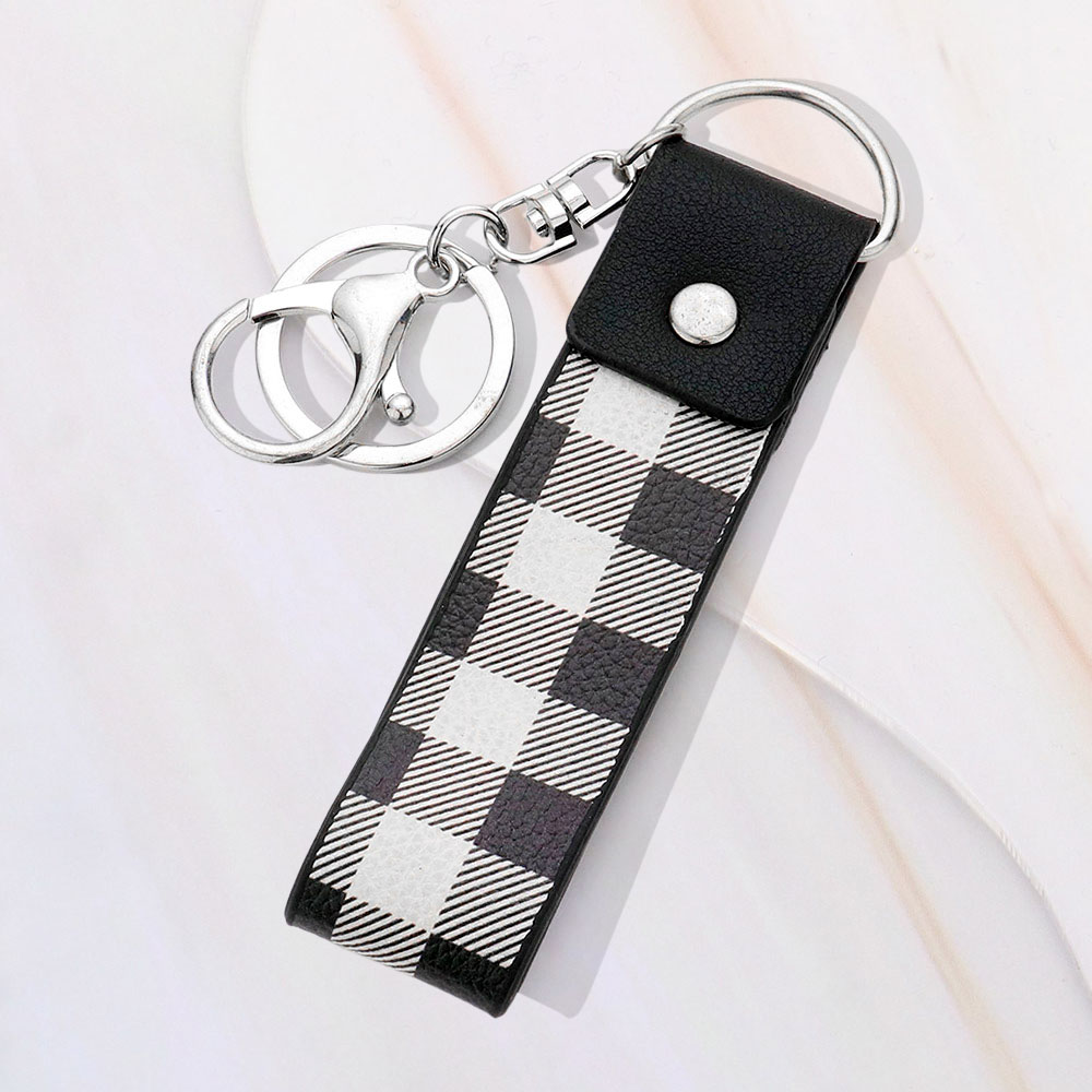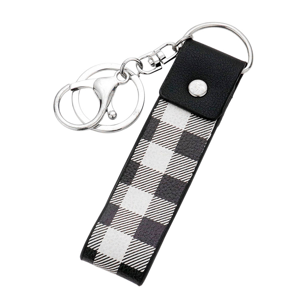 Details • Size : 1" X 4" • Stay organized in style with this plaid leather keychain featuring a bold checkered design. Finished with a sturdy gold keyring and clip, it offers both durability and charm, making it a practical and fashionable accessory for everyday use or gifting.