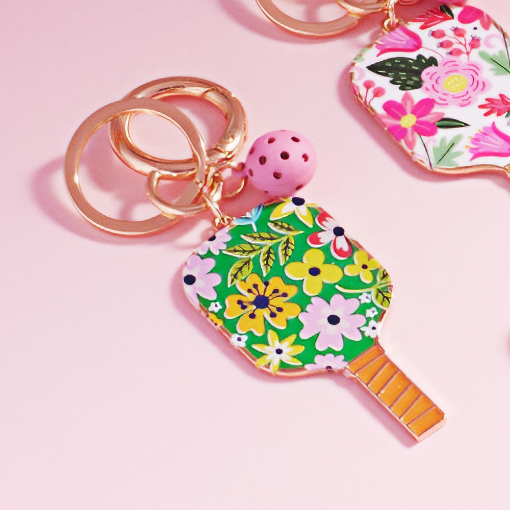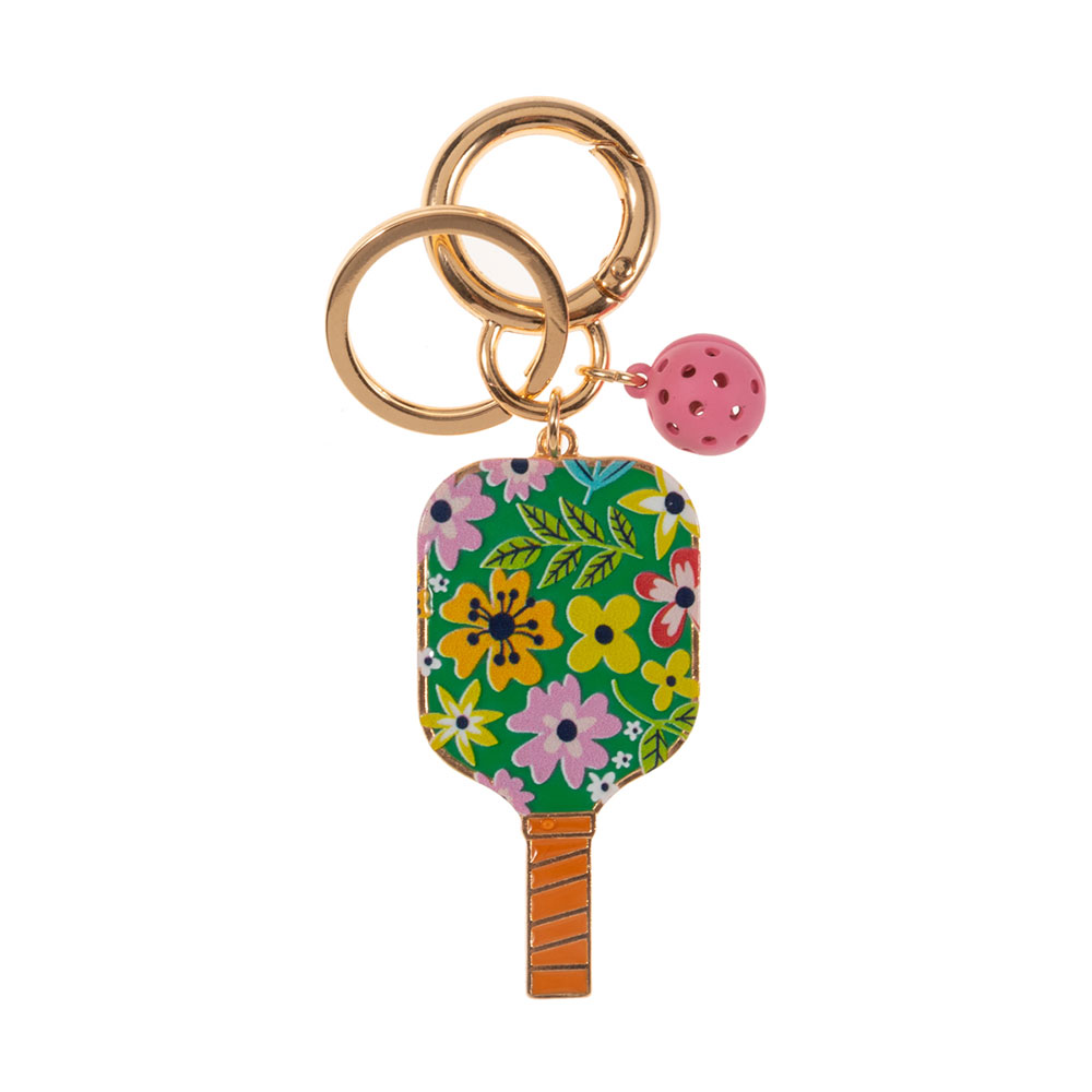 Enamel Floral Pattern Pickleball Paddle Keychain / Bag Charm