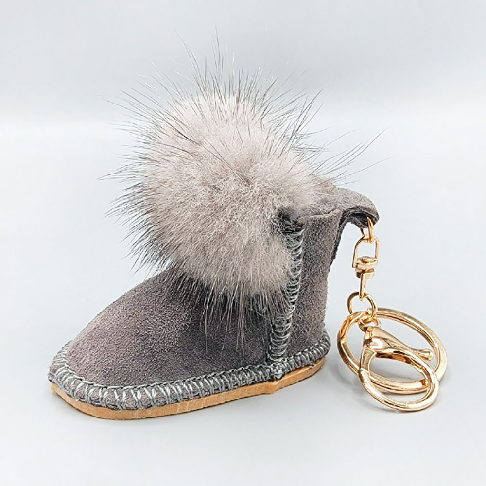 Faux Fur Pom Pom Boot Keychain