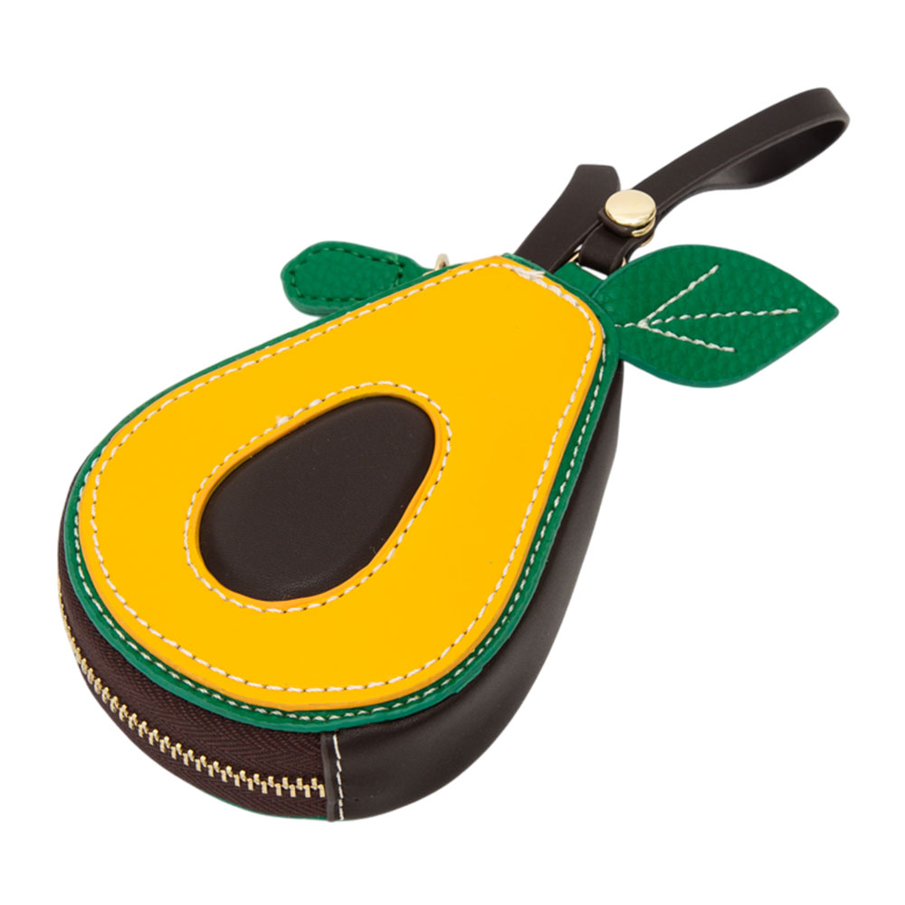 Details • Size : 7.5" L, 3.75" X 5.2" • Zipper Closure • Whimsical avocado-shaped coin pouch featuring a zip closure and handy wrist strap. Great for holding small essentials like change, earbuds, or lip balm. Cute and compact for everyday use or gifting.