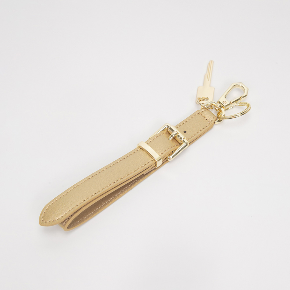 • Keep your essentials close with this adjustable wristlet keychain strap. Featuring a sleek belt-inspired design with a secure buckle and gold-tone accents, it offers both elegance and functionality—perfect for carrying keys or small accessories in effortless style.