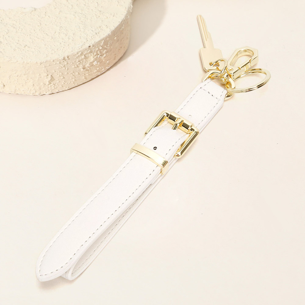 Faux Leather Key Accent Belt Wristlet Keychain Strap Bag Charm