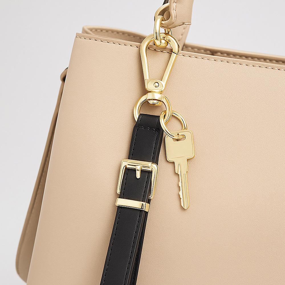 • Keep your essentials close with this adjustable wristlet keychain strap. Featuring a sleek belt-inspired design with a secure buckle and gold-tone accents, it offers both elegance and functionality—perfect for carrying keys or small accessories in effortless style.