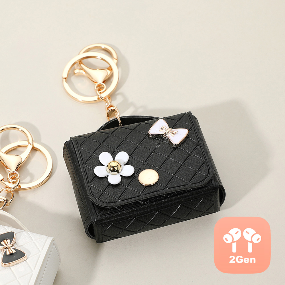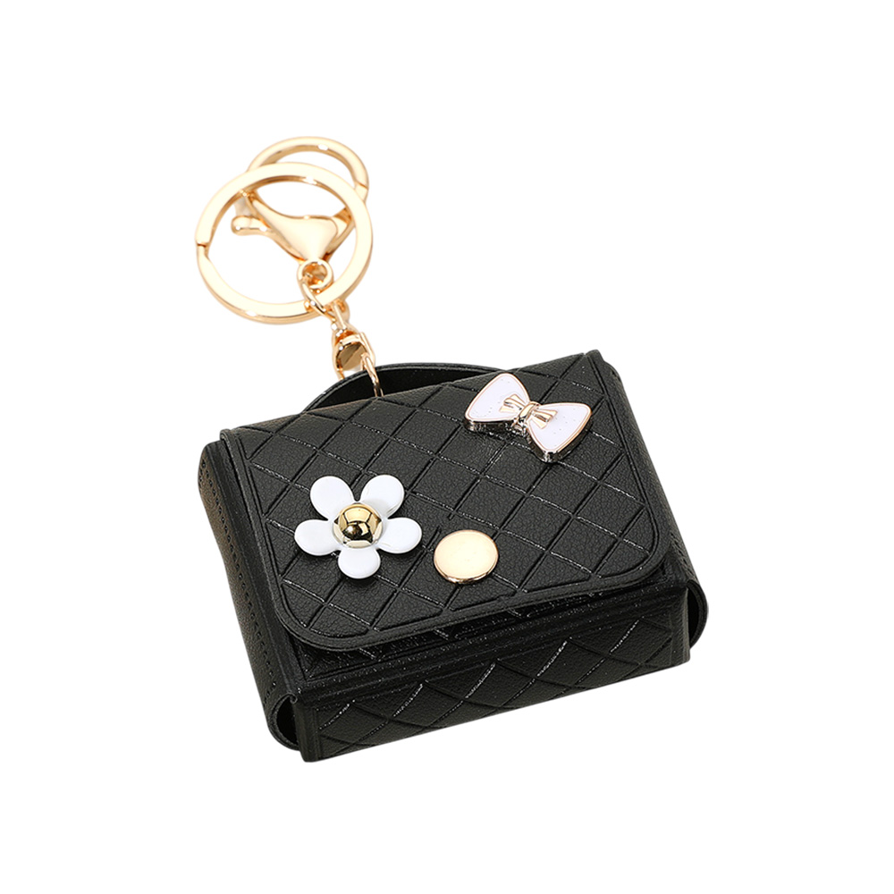 Flower Bow Charm Embellished Faux Leather Mini Purse Keychain / Bag Charm