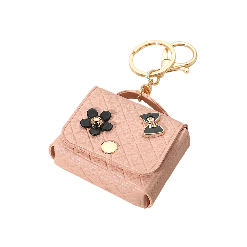 Flower Bow Charm Embellished Faux Leather Mini Purse Keychain / Bag Charm