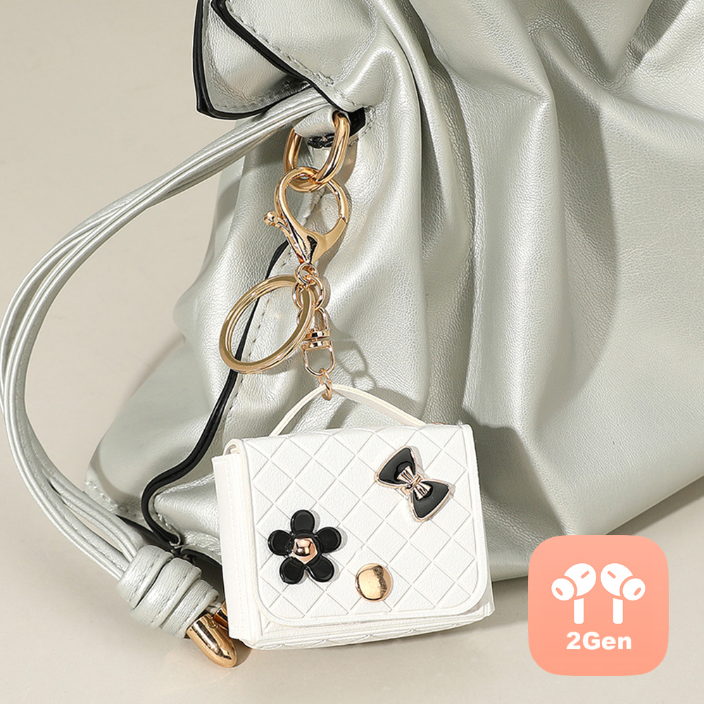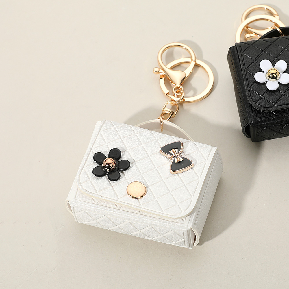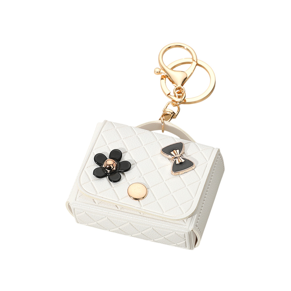 Flower Bow Charm Embellished Faux Leather Mini Purse Keychain / Bag Charm