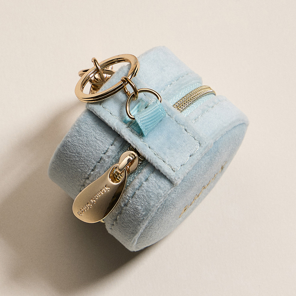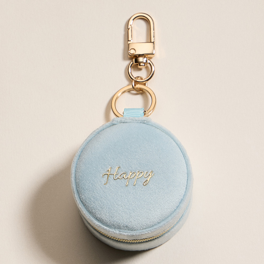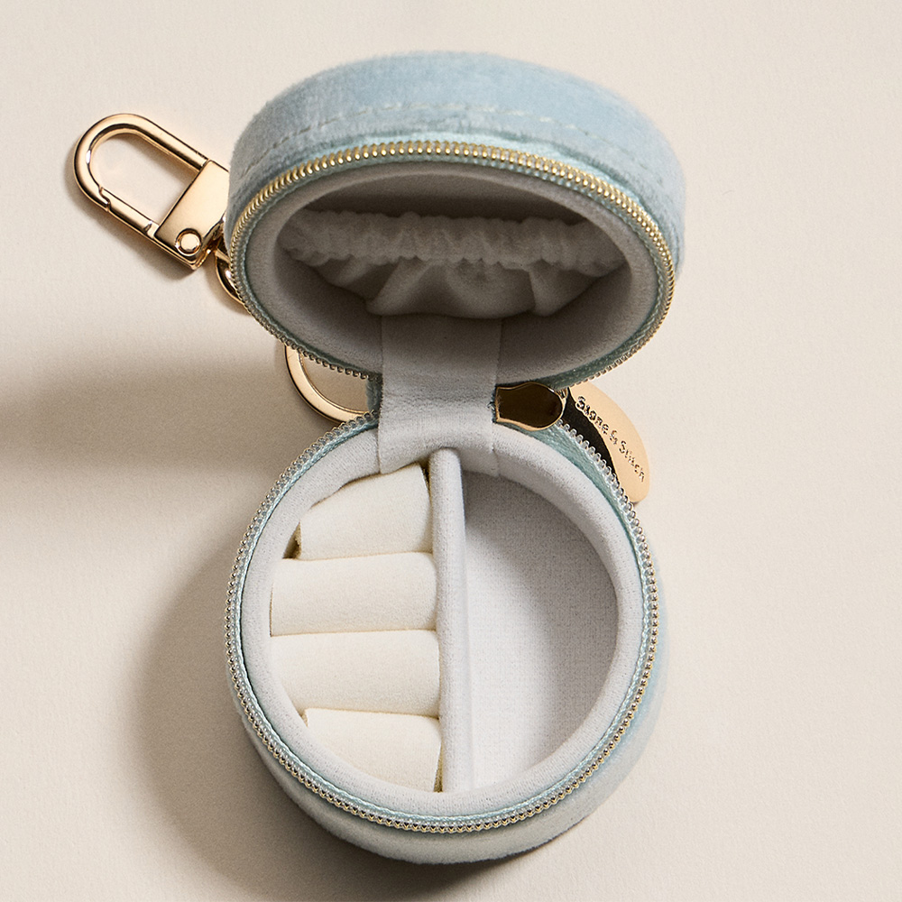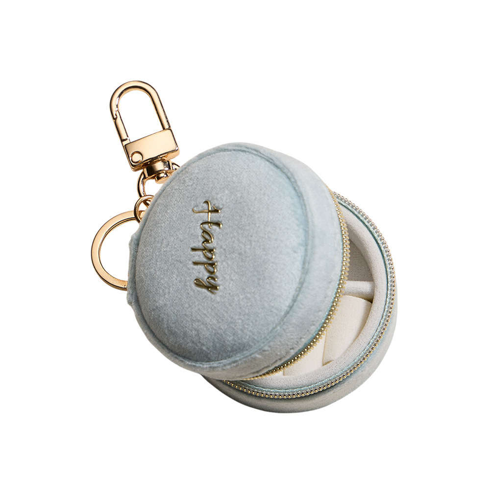 Details • Size : 2.25" X 1.5" • Zipper closure for secure storage • Polished gold-tone keyring with clasp hardware • Compact storage for rings, earrings & small jewelry • Ideal for travel, everyday use, or thoughtful gifts • Keep your jewelry safe and organized with this compact round travel case. Features a zipper closure, interior slots for rings and earrings, and a keychain clip for convenience. Perfect for travel, handbags, or daily use, this portable storage box ensures your accessories stay secure anywhere.