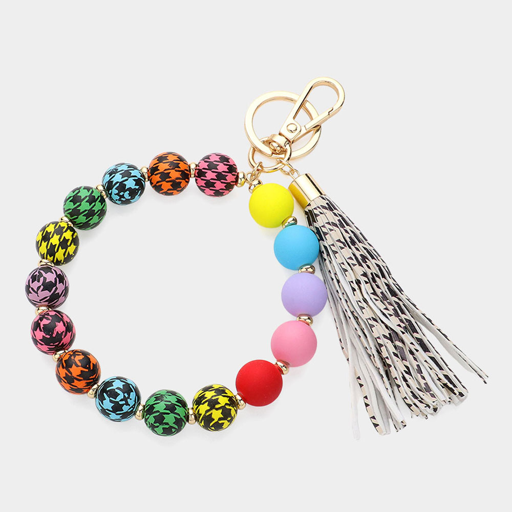Houndstooth Patterned Beaded Tassel Keychain / Bracelet