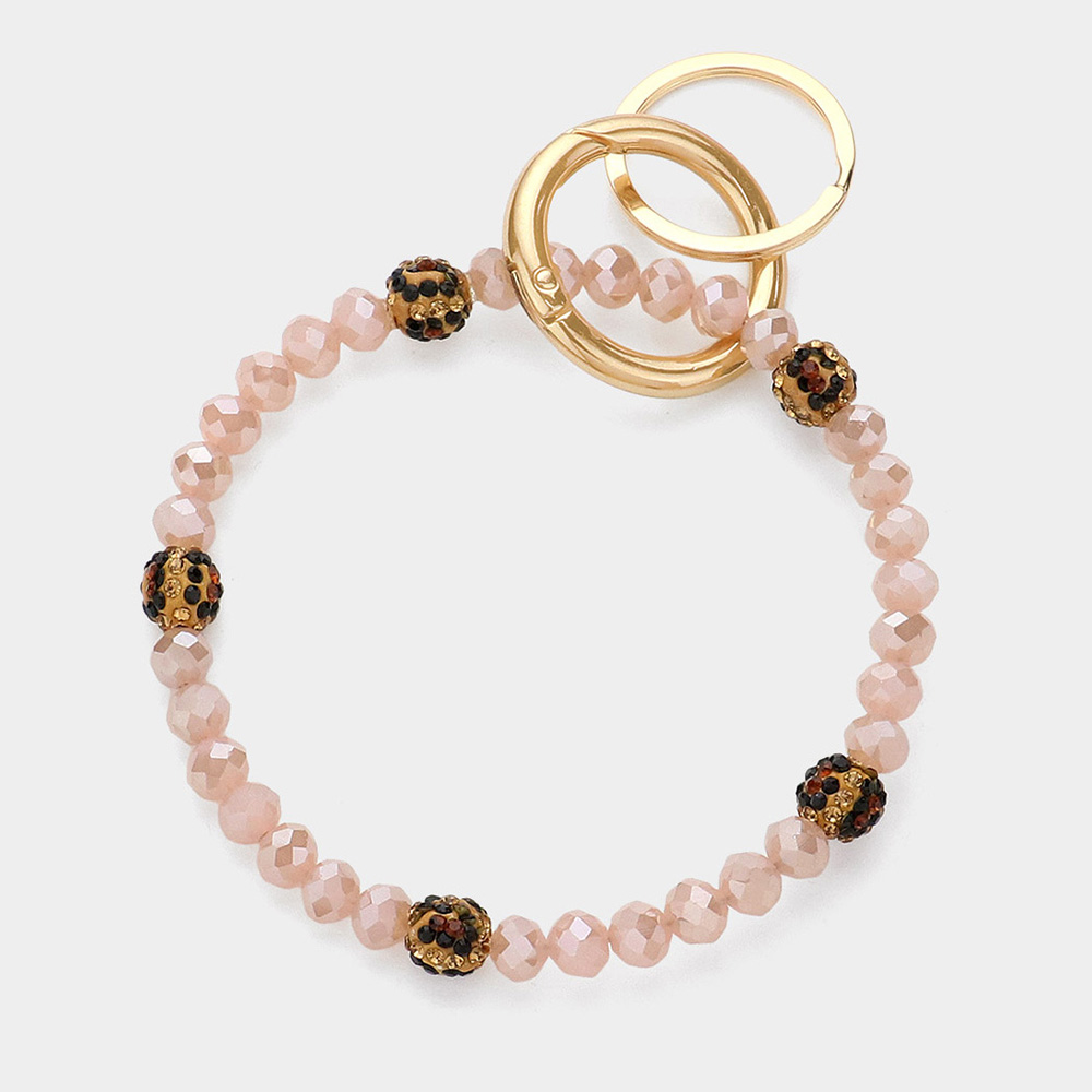 Leopard Patterned Shamballa Ball Accented Faceted Beaded Keychain / Bracelet