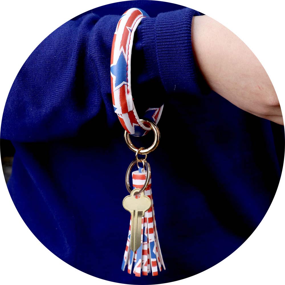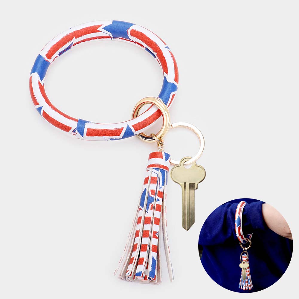 Patriotic USA Flag Faux Leather Tassel Keychain / Bracelet