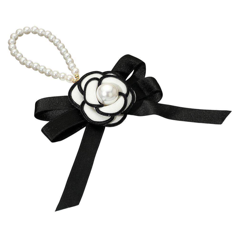 Pearl Accent Floral Bow Keychain / Bag Charm