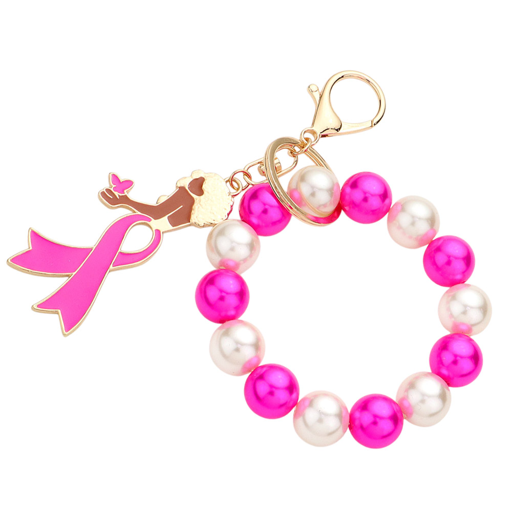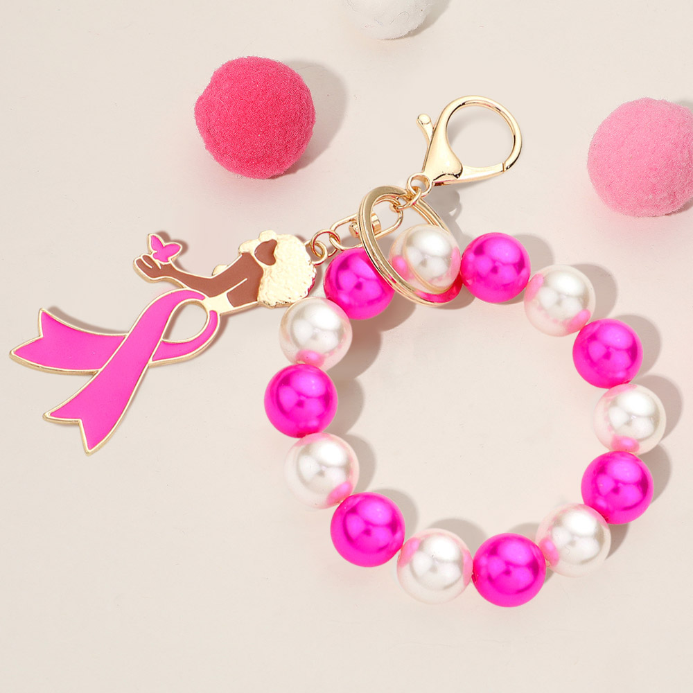 Pink Ribbon Afro Girl Pearl Stretch Keychain / Bracelet