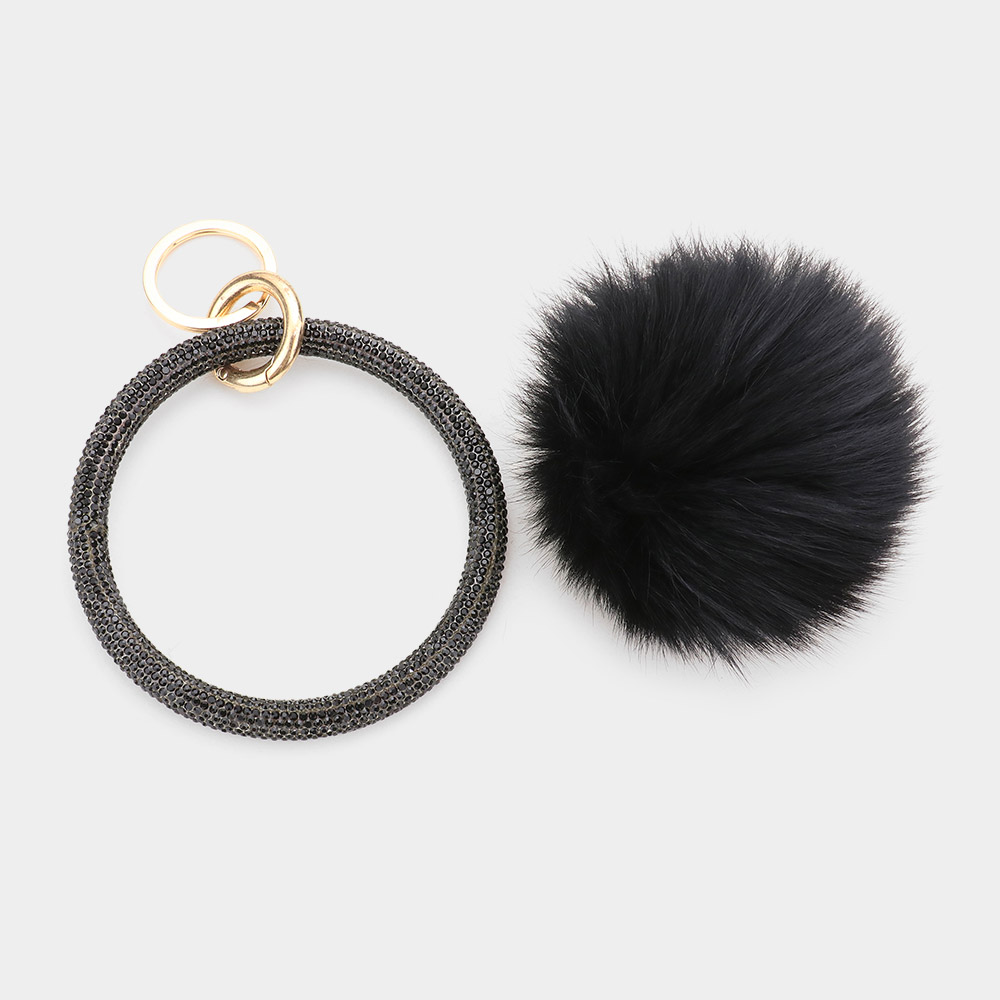 Pom Pom Rhinestone Pave Bangle Keychain / Bracelet