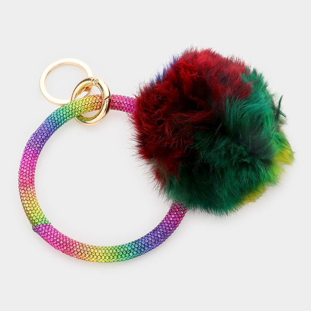 Pom Pom Rhinestone Pave Bangle Keychain / Bracelet